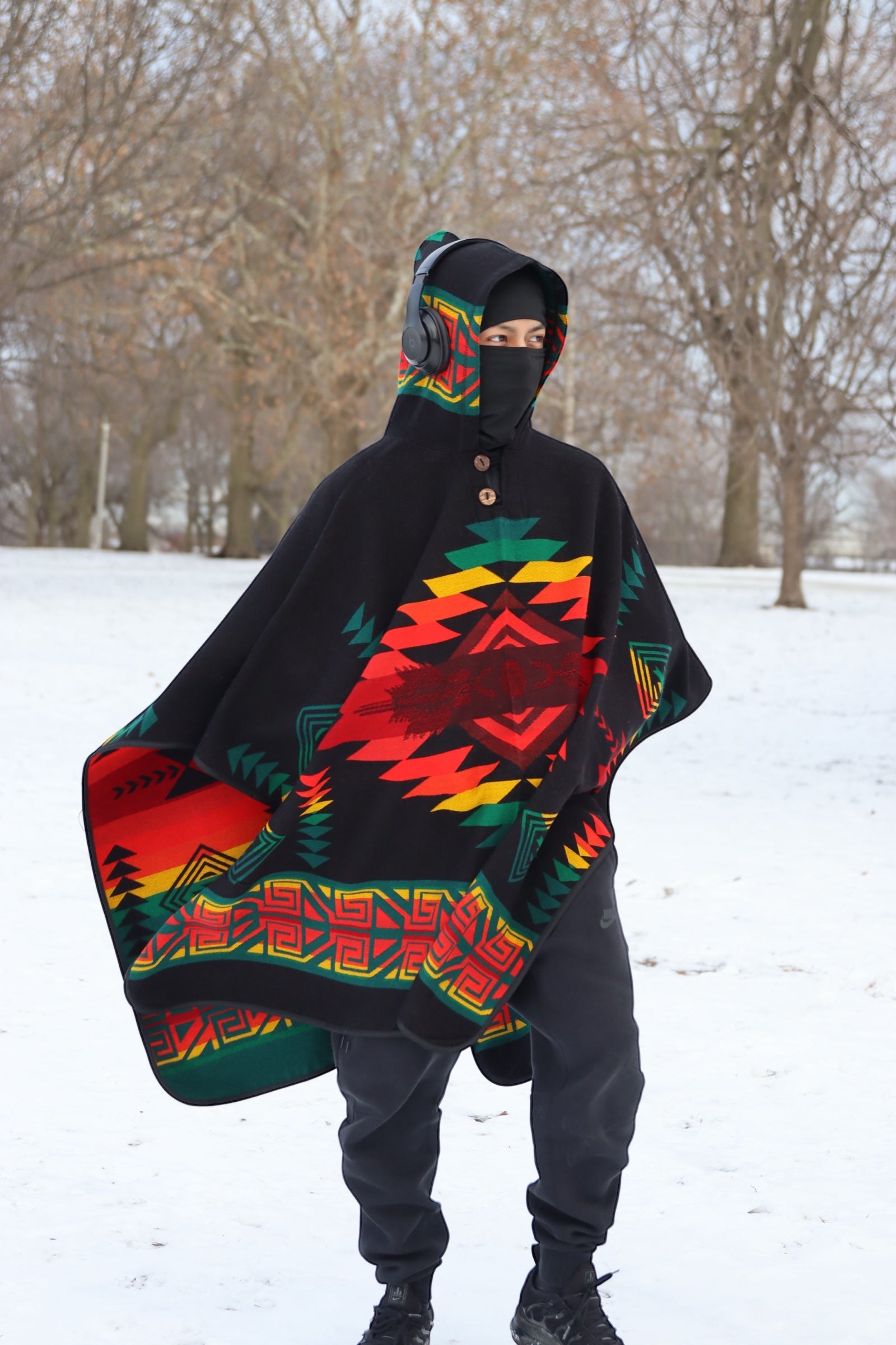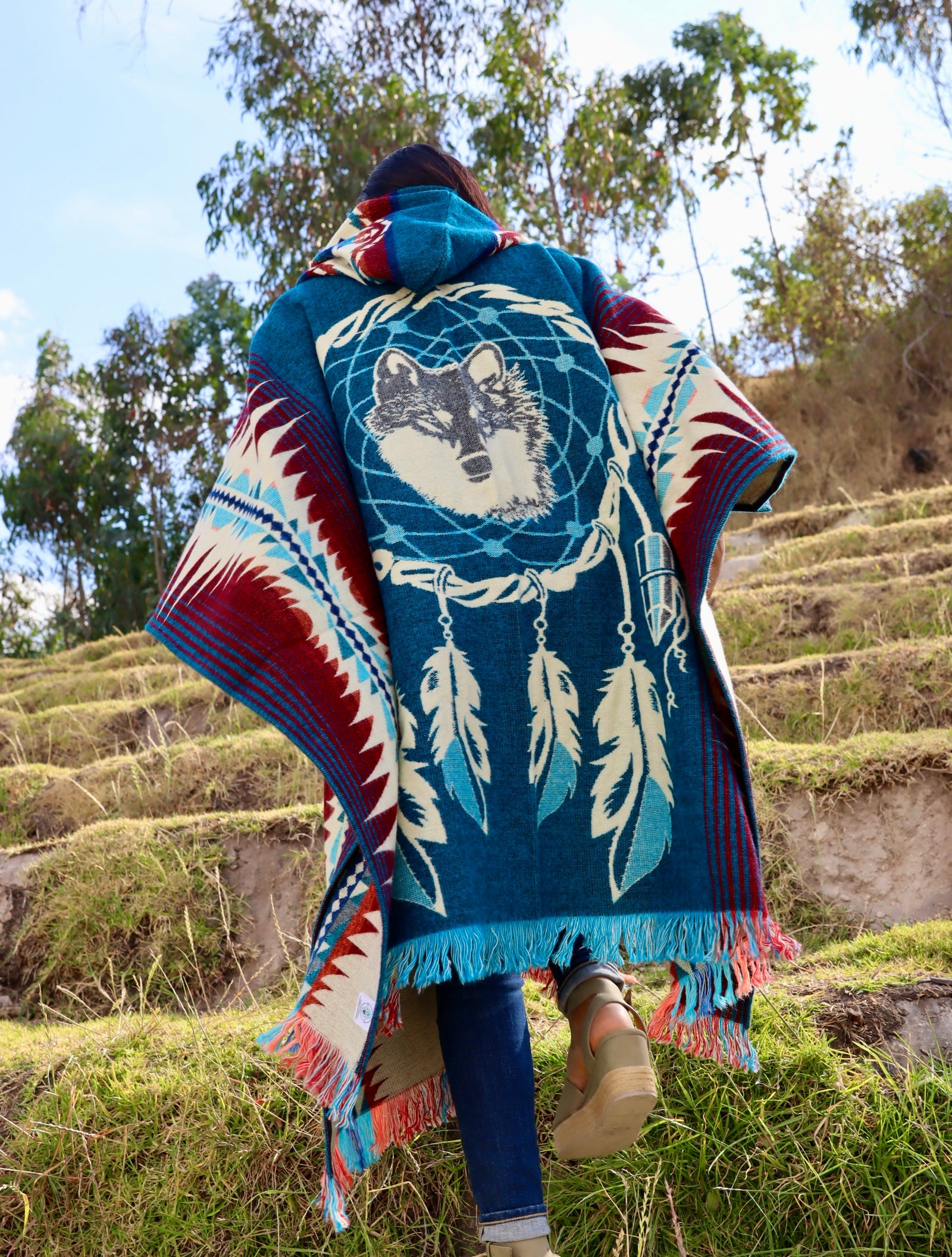 Our ponchos are handmade in Otavalo, Ecuador by indigenous artisans using a blend of: